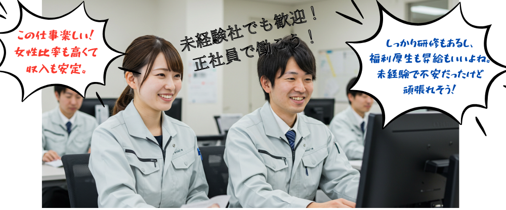 当社では、9割以上のスタッフが未経験からスタートしており、 未経験者へのサポート体制も充実しています。 定期的な面談を行い、キャリア形成の手助けをし、 自身の成長を実感できる環境を提供いたします。 ...