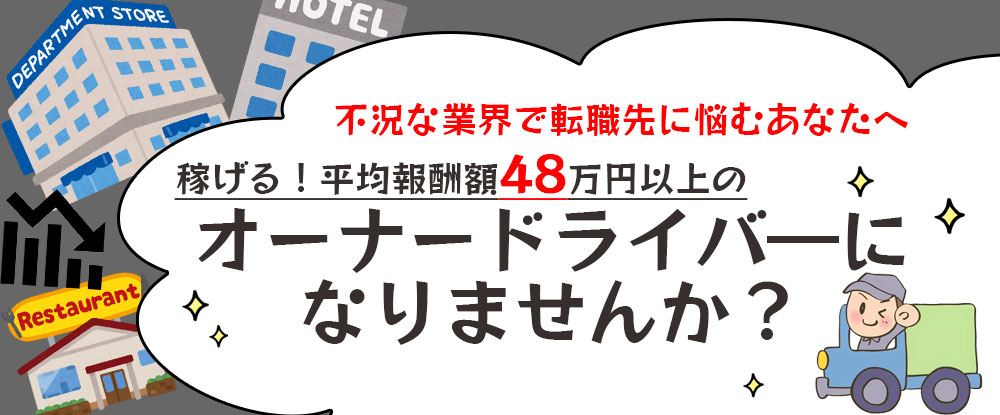 「自由に働きたい」 「正社員ではなく、オーナーとして稼いでいきたい」 そんな方にはスーパーカーゴの協力業者がお勧めです。 空いている時間や曜日を活用しての兼業でも、フルタイムで稼働し専業として稼ぐ...