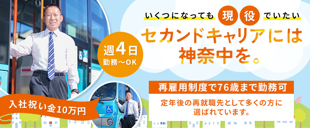 人生100年時代と言われる昨今。 定年後の再就職先について お悩みの方も多いのではないでしょうか。 「安定したセカンドキャリア」を叶えるなら 東証プライム上場・小田急グループの一員である 神奈中タ...