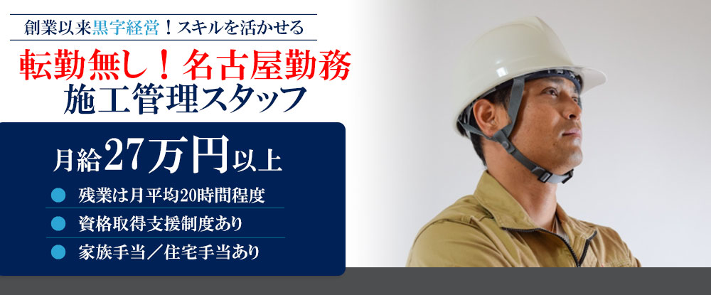 上場企業の施工管理/創業439年・寮費月約1万・原則土日祝休/有資格者、大歓迎