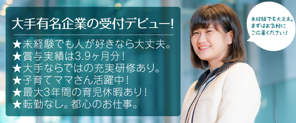 受付・接客・事務業務◆未経験歓迎/産休育休取得率100%/残業少なめ/年間休日120日以上◆