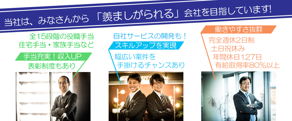 ・【未経験歓迎】未経験入社90%、丁寧な研修+シスター制度で安心スタート ・【働きやすさ】月平均残業わずか10時間、完全週休2日制+年間休日120日 ・【長期休暇】年3回(最大12連休)、リフレッシ...
