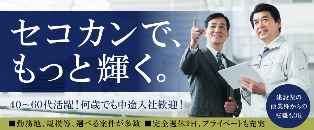 ■柔軟な働き方を実現■ ―――――――――― 私たちセイコービジネスコンサルティングは、 社員一人ひとりの希望を大切にしています。 取引先は大手ゼネコン企業が中心で、 建築、土木、設備、電気、プラ...