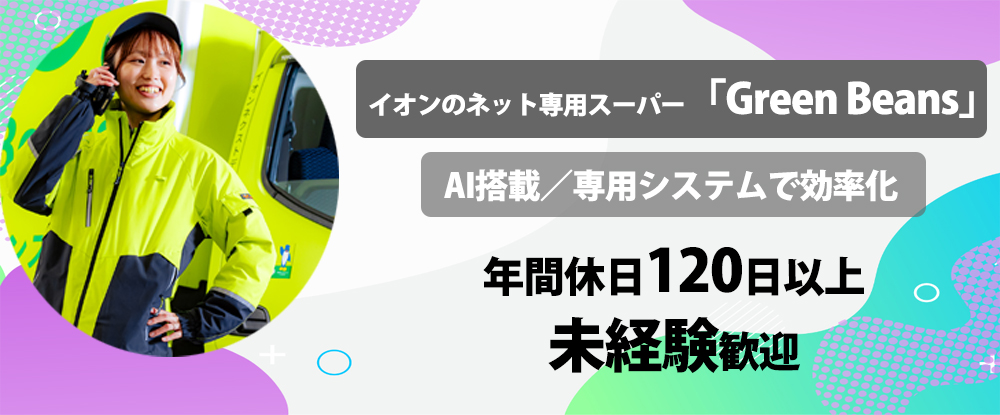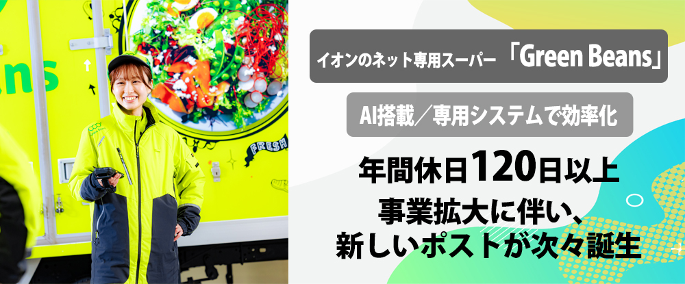 イオングループの安定基盤と、新規事業ならではの成長性を兼ね備えた環境で、 あなたも新しい一歩を踏み出しませんか? 当社はイオンのネット専用スーパー「Green Beans」の配送を担う企業として、...