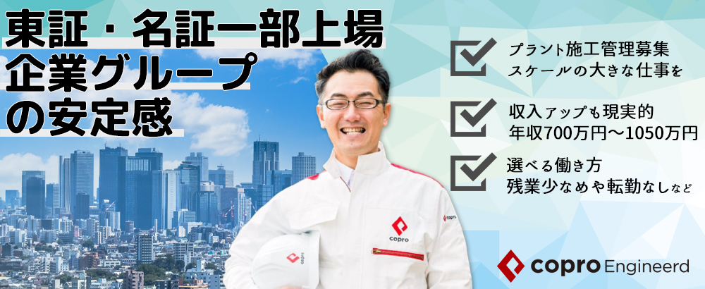 プラント施工管理◆東証プライム・名証プレミア上場企業グループ/年収1000万円以上も目指せる/j ◆