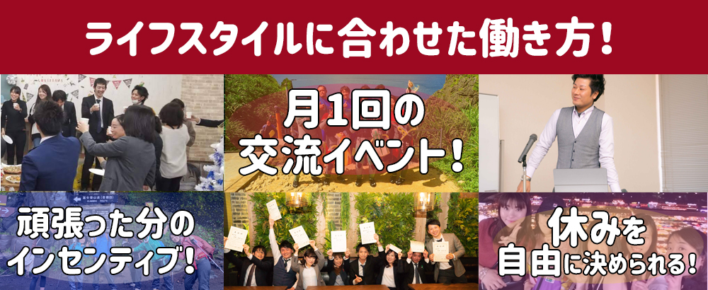 | 勤務地 | ■全国各地のご希望の地域。「キャッシュバック」「広告バックアップ」2大キャンペーン実施中の地域あり! |