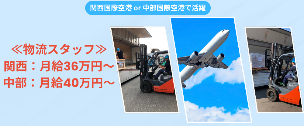 物流スタッフ◆残業少なめ/未経験OK/土日の休みもOK/関西国際空港or中部国際空港で活躍◆