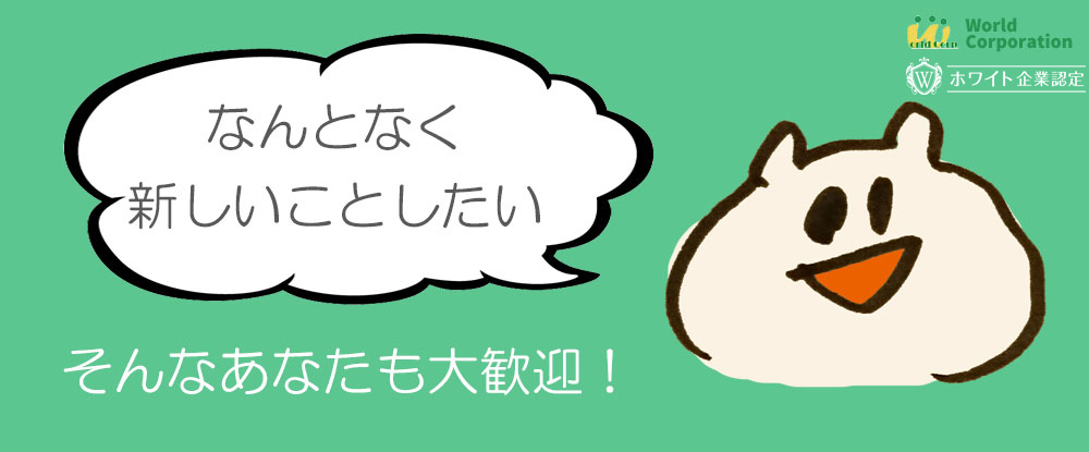 当社は「ホワイト企業認定」を取得し、働きやすい環境づくりを徹底しています。 \SNSで特別情報も発信中/ Instagramで「world_corp_recruit」と検索! メンバー紹介など限定...