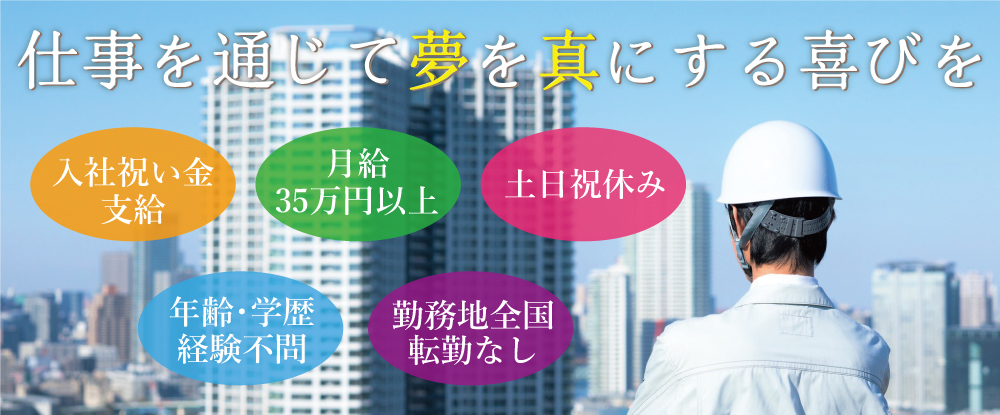 ■重視するのは「やる気」と「興味」■ 私たちが求めるのは、業界経験よりも、 「建設に対する興味」や「チャレンジ精神」です。 未経験者でも歓迎で、しっかりとしたサポート体制が整っているため、 安心して...