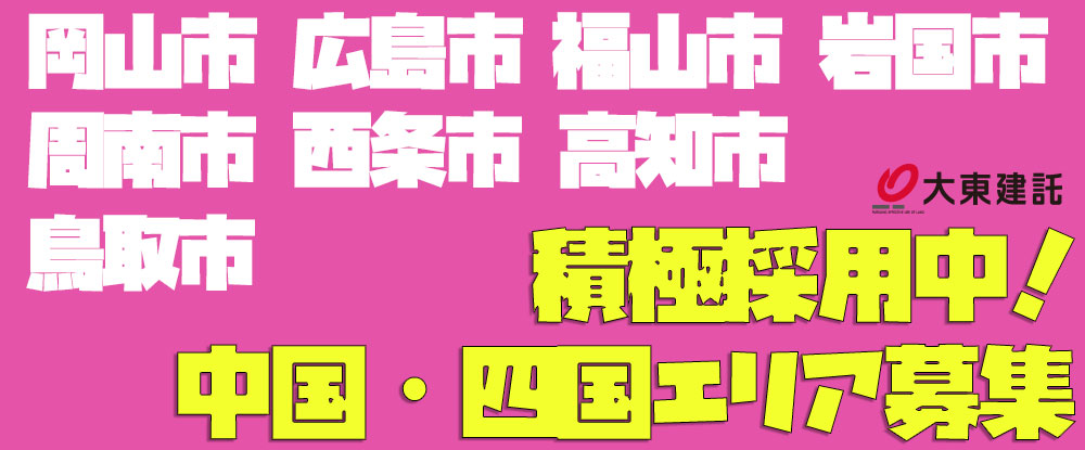| 勤務地 | 中国地方・四国地方を中心とした全国47都道府県の各営業所での募集 |