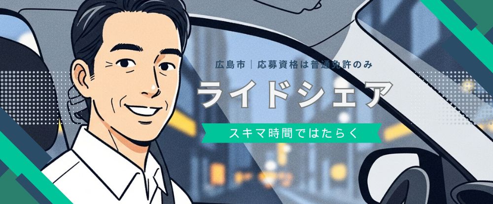 【DiDiモビリティジャパン 採用プロジェクト】 今話題のライドシェアドライバーとして、あなたも広島の街を走りませんか? 副業OK。好きを仕事に! ~~~~~~~~~~~ 運転が好きな方、大歓迎!...