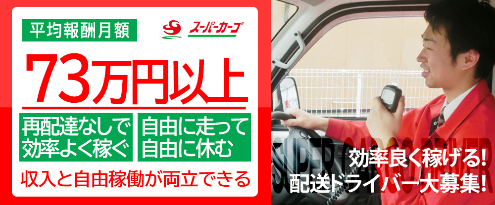 「とにかく稼ぎたい」「副業と両立したい」 「子育て、介護の時間を作りたい」 そんなサラリーマンでは実現困難な事も自営業なら可能! 多くの仲間が助け合うスーパーカーゴならではの魅力です! 個人宅配と違...