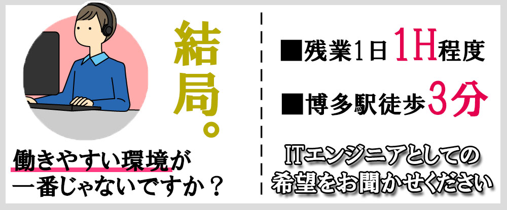 ITエンジニア◆月給30万円~、前給保証/残業少なめ/ニーズの高まっている福岡エリアで積極採用を実施