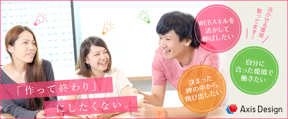 | 仕事内容 | 求人広告の「バナー」や「メッセージ画像」などの制作。経験・能力に応じて様々な案件をお任せします。 |