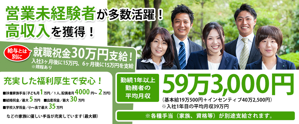 住宅商品の提案営業◆未経験歓迎/高収入/社宅・寮 無料/幅広い年代で活躍中/基本定時帰社/直帰OK◆
