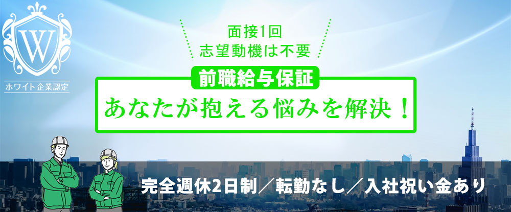 昨今の建築業界は人手不足が慢性化しており、 中でも施工管理士・設計職は高い需要にあります。 しかし、労働環境や給与条件に不満を抱えている方も少なくありません。 当社は **「ホワイト企業認定」**を...