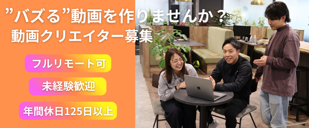 | 仕事内容 | 【リモート可×正社員】WEB・動画クリエイター◆約9ヶ月の研修で未経験でも安心!年間休日125日~ |