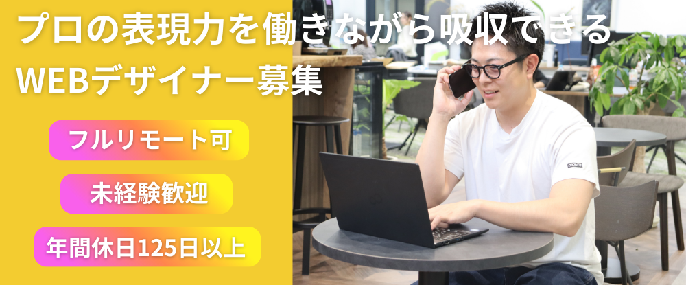 | 仕事内容 | 【フルリモート可×正社員】Webデザイナー◆約9ヶ月の研修で未経験でも安心!年間休日125日~ |