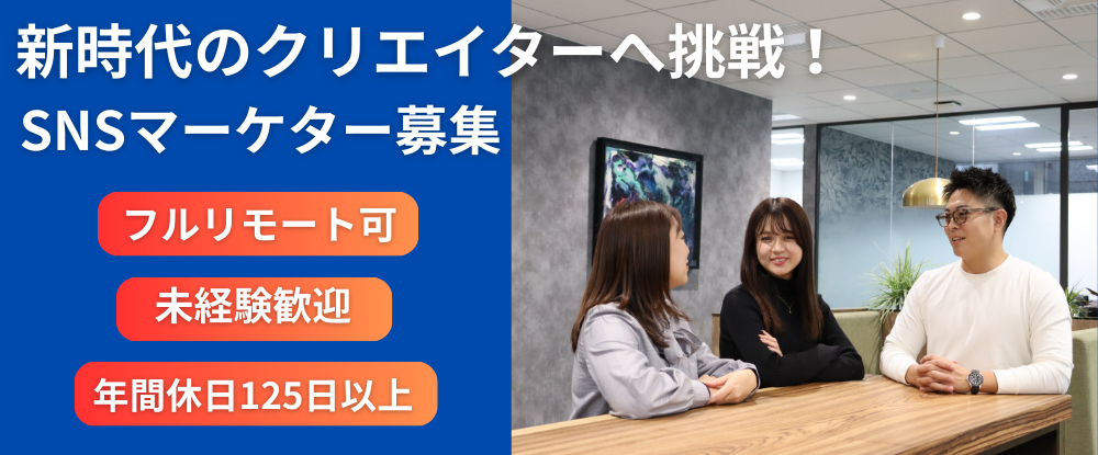 【正社員】リモート案件あり!SNSマーケター◆約9ヶ月の研修で未経験でも安心/年間休日125日~