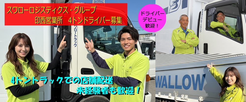 「スワロー輸送」、「スワロートラック」、 「千葉スワロートラック」、「京浜スワロートラック」の 物流会社4社にて、首都圏中心に 運送業務と物流センター運営業務を行っている当社。 有名スーパーやホー...
