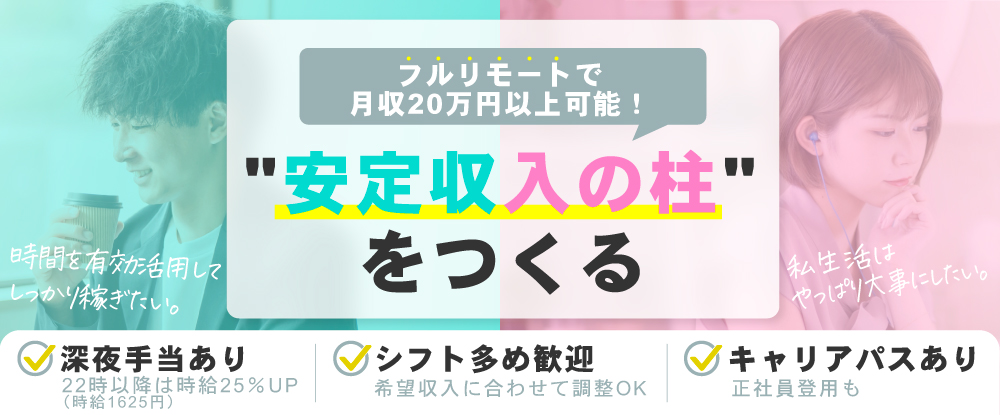 在宅で「安定収入」と「キャリア」を手に入れる。急成長サービスの次期リーダー候補。